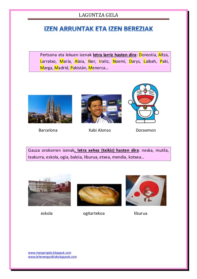 Gogoratu izen bereziak letra larriz idazten direla!